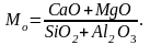 Модуль основности – отношение содержащихся в шлаке основных оксидов к сумме кислотных, %: