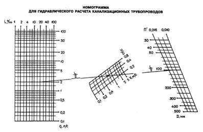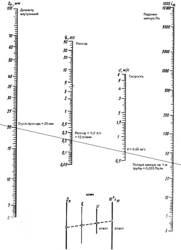 Номограмма для определения потерь напора в трубах диаметрами 6-100 мм