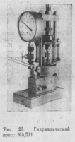 4. Параллельно определить содержание слабых и выветренных зерен. Помимо визуального осмотра это возможно с помощью механического индикатора 1–3 или на прессе ХАДИ (рис. 23); отобранную пробу гравия рассеять на четыре фракции 5–10, 10–20, 20–40 и 40–70 мм. Каждое зерно указанных фракций испытать статической нагрузкой: