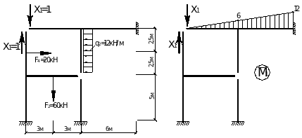 Для виконання кінематичної перевірки, побудуємо епюру внутрішніх зусиль, від одиничного значення невідомого – Х1, в обраній основній системі методу сил.