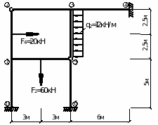 Основну систему методу переміщень вибираємо шляхом накладання у вузли системи в’язей, які заперечують кутові та лінійні переміщення цих вузлів. Для того, щоб відрізнити накладені в’язі від в’язей розрахункової схеми рами, будемо позначати їх подвійними лініями.