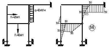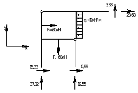 q2 = 12 кН/м; F2 = 60 кН; F4 = 20 кН.