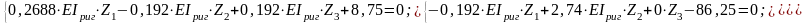 – другого – реактивний момент в 2 в’язі від лінійного зміщення Z1, кутових переміщень Z2 і Z3 та зовнішнього навантаження дорівнює нулю;