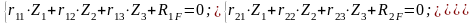 – першого – реактивне зусилля в 1 в’язі від лінійного зміщення Z1, кутових переміщень Z2 і Z3 та зовнішнього навантаження дорівнює нулю;