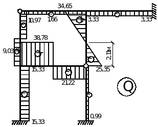 Епюру поперечних зусиль (Q) будуємо з використанням епюри згинаючих моментів для заданої системи