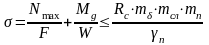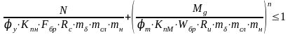 В плоскости рамы расчет на прочность проводят на действие максимальных продольных сжимающих сил и изгибающих моментов от расчетных нагрузок по формуле: