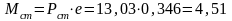 Мcтлев =- Мcт +хст∙H = -4,51+ 0,647∙5,97 = 0,647кНм