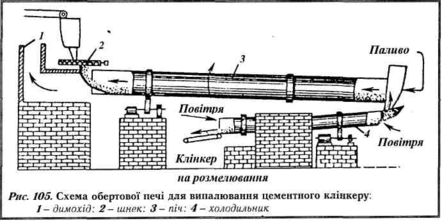 Випалюють вапняково-глиняні суміші в обертових печах безперервної дії (рис. 1).