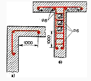 Рисунок 1 – армирование угла и примыкания внутренней стены к наружной, а) – в углах, б) в местах прохождения каналов