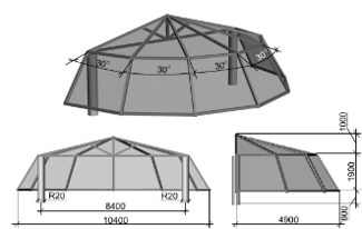 | Веранда | С остеклением, двуполая | 900 | 1 | |||
