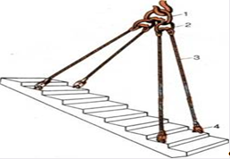 Рис. 14. Подъем лестничного марша четырехветвевым стропом: