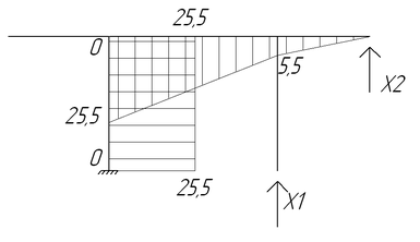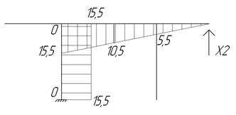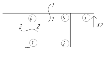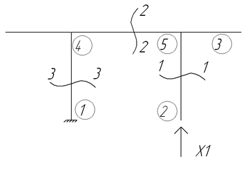 Рисунок 5 – Эквивалентная схема рамы под нагрузкой Х2=1