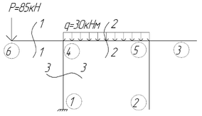 Рисунок 8 – Эквивалентная схема рамы под нагрузкой P и q