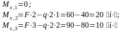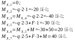 Определяем изгибающие моменты в характерных сечениях.