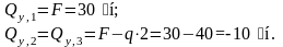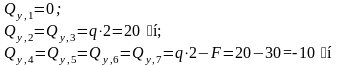 Определяем поперечные силы в характерных сечениях.