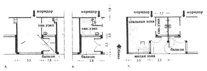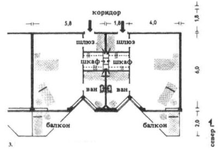 В. Корпус схемы В с односторонней застройкой коридора с центральным расположением лестничной клетки, примыкающими к ней подсобными помещениями и уширенным коридором. Коридор хорошо освещается через окна, расположенные в его срезанных углах, через лестничную клетку и через фрамуги подсобных помещений (моечные, буфет и т.п.). Балконы со срезанными углами имеют достаточные размеры и не затеняют палат и ванных комнат.
