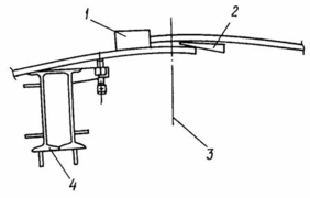 1 - ограничительная пластина; 2 - клин; 3 - ось вертикального монтажного стыка; 4 - приспособление для замыкания