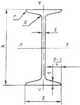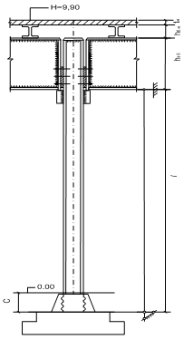 = Откуда выражаем требуемый момент сопротивления балки Wтр: Wтр= h — высота двутавра; b — ширина полки; s — толщина стенки; t — средняя толщина полки; R — радиус внутреннего закругления; r — радиус закругления полки Балки двутавровые (ГОСТ 8239-89) Таблица 2 Номер двутавра Размеры Площадь поперечного сечения, см2 Масса 1 м, кг Справочные значения для осей h b s t R r X – X Y – Y не более мм Ix, Wx, ix, Sx, Iy, Wy, iy, см4 см3 см см3 см4 см3 см 10 100 55 4,5 7,2 7,0 2,5 12,0 9,46 198 39,7 4,06 23,0 17,9 6,49 1,22 12 120 64 4,8 7,3 7,5 3,0 14,7 11,50 350 58,4 4,88 33,7 27,9 8,72 1,38 14 140 73 4,9 7,5 8,0 3,0 17,4 13,70 572 81,7 5,73 46,8 41,9 11,50 1,55 16 160 81 5,0 7,8 8,5 3,5 20,2 15,90 873 109,0 6,57 62,3 58,6 14,50 1,70 18 180 90 5,1 8,1 9,0 3,5 23,4 18,40 1290 143,0 7,42 81,4 82,6 18,40 1,88 20 200 100 5,2 8,4 9,5 4,0 26,8 21,00 1840 184,0 8,28 104,0 115,0 23,10 2,07 22 220 110 5,4 8,7 10,0 4,0 30,6 24,00 2550 232,0 9,13 131,0 157,0 28,60 2,27 24 240 115 5,6 9,5 10,5 4,0 34,8 27,30 3460 289,0 9,97 163,0 198,0 34,50 2,37 27 270 125 6,0 9,8 11,0 4,5 40,2 31,50 5010 371,0 11,20 210,0 260,0 41,50 2,54 30 300 135 6,5 10,2 12,0 5,0 46,5 36,50 7080 472,0 12,30 268,0 337,0 49,90 2,69 33 330 140 7,0 11,2 13,0 5,0 53,8 42,20 9840 597,0 13,50 339,0 419,0 59,90 2,79 36 360 145 7,5 12,3 14,0 6,0 61,9 48,60 13380 743,0 14,70 423,0 516,0 71,10 2,89 40 400 155 8,3 13,0 15,0 6,0 72,6 57,00 19062 953,0 16,20 545,0 667,0 86,10 3,03 45 450 160 9,0 14,2 16,0 7,0 84,7 66,50 27696 1231,0 18,10 708,0 808,0 101,00 3,09 50 500 170 10,0 15,2 17,0 7,0 100,0 78,50 39727 1589,0 19,90 919,0 1043,0 123,00 3,23 55 550 180 11,0 16,5 18,0 7,0 118,0 92,60 55962 2035,0 21,80 1181,0 1356,0 151,00 3,39 60 600 190 12,0 17,8 20,0 8,0 138,0 108,00 76806 2560,0 23,60 1491,0 1725,0 182,00 3,54 Принимаем двутавр № 55: Wx=2035,0 см3 (Wx=2035,0 см3>Wтр=1601,8 см3), Jх=55962 см4. Проверяем прогиб балки: жесткость обеспечена. 3. Расчет центрально сжатой колонны Геометрическая длина колонны l: l=H-tн-hб.н.-hг.б.+c=990-12-55-170+50= 803 см. tн = 12 см – толщина настила; hб.н = 55 см – высота балки настила; hг.б = 170 см – высота главной балки; l0 – расчетная длина: l0= х l = l, так как = 1для данной расчетной схемы. Продольная сила в колонне: N=g x L x B x 1,02 = 3362х13,6х6,6х1,02=307809 кг Проверка устойчивости центрально сжатых стержней: = Требуемая площадь сечения колонны: Аmp= адаем = 0,7: Аmp = Принимаем двутавр с параллельными гранями полок I40K2 A = 218,69 cм2, iy=10,12 cм. Гибкость относительно оси Y: y = Проверка устойчивости: = Устойчивость обеспечена. Коэффициенты продольного изгиба центрально-сжатых элементов (СНиП II-23-81*) Гиб-кость Коэффициенты для элементов из стали с расчетным сопротивлением Ry, МПа (кгс/см2) 200 (2050) 240 (2450) 280 (2850) 320 (3250) 360 (3650) 400 (4100) 440 (4500) 480 (4900) 520 (5300) 560 (5700) 600 (6100) 640 (6550) 10 20 30 40 50 60 70 80 90 100 110 120 130 140 150 160 170 180 190 200 210 220 988 967 939 906 869 827 782 734 665 599 537 479 425 376 328 290 259 233 210 191 174 160 987 962 931 894 852 805 754 686 612 542 478 419 364 315 276 244 218 196 177 161 147 135 985 959 924 883 836 785 724 641 565 493 427 366 313 272 239 212 189 170 154 140 128 118 984 955 917 873 822 766 687 602 522 448 381 321 276 240 211 187 167 150 136 124 113 104 983 952 911 863 809 749 654 566 483 408 338 287 247 215 189 167 150 135 122 111 102 094 982 949 905 854 796 721 623 532 447 369 306 260 223 195 171 152 136 123 111 101 093 086 981 946 900 846 785 696 595 501 413 335 280 237 204 178 157 139 125 112 102 093 085 077 980 943 895 839 775 672 568 471 380 309 258 219 189 164 145 129 115 104 094 086 079 073 979 941 891 832 764 650 542 442 349 286 239 203 175 153 134 120 107 097 088 080 074 068 978 938 887 825 746 628 518 414 326 267 223 190 163 143 126 112 100 091 082 075 069 064 977 936 883 820 729 608 494 386 305 250 209 178 153 134 118 105 094 085 077 071 065 060 977 934 879 814 712 588 470 359 287 235 197 167 145 126 111 099 089 081 073 067 062 057 Примечание. Значение коэффициентов в таблице увеличены в 1000 раз. Технические характеристики двутавров стальных горячекатаных с параллельными гранями полок СТО АСЧМ 20-93 представлены в таблице. Профиль Размеры профиля мм Площадь Масса 1 м Справочные величины для осей h b S t R сечения см2 длины кг Ix, см4 Wx см3 Sx см3 ix см Iy, см4 Wy см3 iy см 20 К1 196 199 6,5 10 13 52,69 41,4 3846 392,5 216,4 8,54 1314,4 132,1 4,99 20 К2 200 200 8 12 13 63,53 49,9 4716 471,6 262,8 8,62 1601,4 160,1 5,02 25 К1 246 249 8 12 16 79,72 62,6 9171 745,6 410,7 10,73 3089,9 248,2 6,23 25 К2 250 250 9 14 16 92,18 72,4 10833 866,6 480,3 10,84 3648,6 291,9 6,29 25 К3 253 251 10 15,5 16 102,21 80,2 12154 960,8 535,4 10,9 4088,6 325,8 6,32 30 К1 298 299 9 14 18 110,80 87 18849 1265,1 694,7 13,04 6240,9 417,5 7,51 30 К2 300 300 10 15 18 119,78 94 20411 1360,7 750,