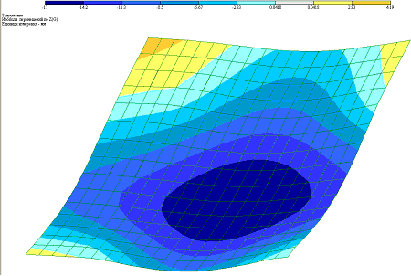 Приведём ниже схему деформирования плиты перекрытия и определим максимальный прогиб для каждого из вариантов.