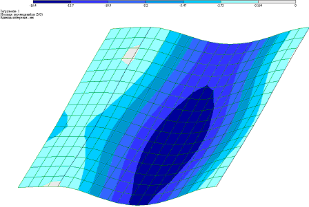 Наибольший прогиб для монолитного варианта плиты перекрытия наблюдается в конечном элементе №486.