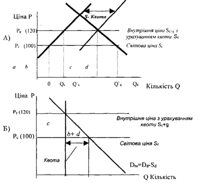 товарів зросли до 120 дол., а за відсутності квоти цей товар можна було придбати за кордоном за ціною 100 дол. Споживачі також зазнають втрат - .