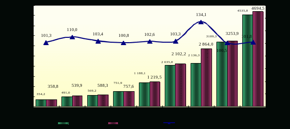 По данным статистики ФТС России за 2008 год в федеральный бюджет перечислено 4694,5 млрд. рублей, что составляет 101,8% от установленного таможенным органам задания. По сравнению с прошлым годом таможенных платежей перечислено на 1440,6 млрд. рублей больше или на 44,3%. (рис. 1).