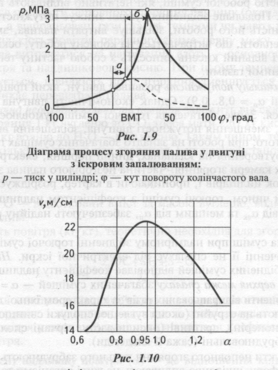 Соотношение VФ/ Vт = 14,9/14,9 характеризует нормальную (стехиометричную) топливную смесь. При ά<1 эта смесь называется богатой, а при ά > 1 называется бедною. Современные двигатели работают на бензине при ά = 08…1,1.