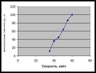 | Скорость транспортного средства, км/ч | Время движения транспортного средства, с. | Расстояние, км |