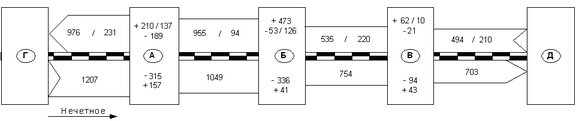 По таблице корреспонденции вагонопотоков и диаграмме порожних вагонопотоков определяются следующие показатели: