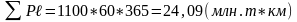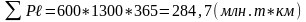 ) представляет собой сумму произведений массы перевезенных грузов