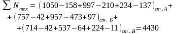 Для этого для каждой станции надо от числа отправленных груженых и порожних вагонов в четном и нечетном направлениях отнять собственную погрузку станции. В нашем примере для станций А, Б, В эта сумма рассчитывается следующим образом: