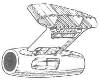 2 — силовые шпангоуты гондолы; 3— продольная балка; 4, 5, б — подкосы передней плоскости крепления двигателя; 7— продольный подкос; 8, 9—подкосы задней плоскости крепления двигателя; 10 — шаровой шарнир заднего крепления; Il — шаровой шарнир крепления подкоса к цапфе двигателя; 12, 13 — узлы крепления силовых шпангоутов гондолы к фюзеляжу. Конструкция, непосредственно закрывающая двигатель, называется капотом. Гондолы должны обеспечивать удобный доступ к двигателю и агрегатам, расположенным на нем, для осмотра, замены и технического обслуживания. Для этого они имеют системы легко-съемных или откидных крышек. Гондолы двигателей представляют собой тонкостенные конструкции, аналогичные конструкции фюзеляжа.