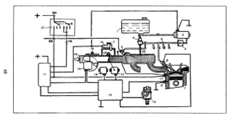 Для облегчения пуска холодного двигателя, также как и в других рассмотренных системах впрыска, здесь применяется электромагнитная пусковая форсунка 6, продолжительность открытия которой изменяется в зависимости от температуры охлаждающей жидкости (термореле 17).