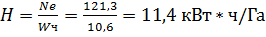 Где, Ne=121.3 кВт, Wч=10,6 Га/ч