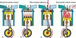 а) впуск; б) сжатие; в) рабочий ход; г) выпуск