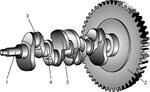 1 - коленчатый вал двигателя; 2 - маховик с зубчатым венцом; 3 - шатунная шейка; 4 - коренная (опорная) шейка; 5 - противовес