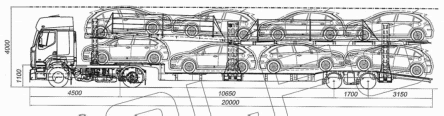 На рис. Для примера приведено расположение на автовозе автомобиля Citroen C4: L=4260, H=1458.