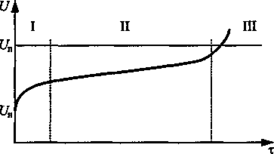 На рисунке изображена кривая нарастания во времени износа пары работающих деталей, которая справедлива для большинства сопряжений, работающих в установившемся режиме. Кривая имеет три явно выраженных участка: I – начальный, характеризующий процесс приработки нового сопряжения; II – участок, наибольший по протяжённости и соответствующий периоду нормальной работы сопряжения, т.е. естественным износом; III - конечный, соответствующий периоду разрушения сопряжения вследствие износа его сверх допустимого предела.