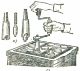 Рис. 6. Съёмник крышек АКБ Рис. 7. Схема высверливания выводного