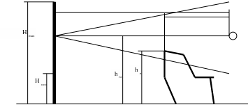 Общая высота табло определяется размером максимальной зоны зрительного наблюдения в вертикальной плоскости, которая составляет 450 над горизонтальной линией взгляда.
