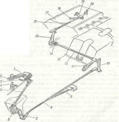 Для остановки двигателя необходимо уменьшить частоту вращения коленчатого вала до минимальной и вытянуть кнопку ручного управления рычагом 21 остановки двигателя. Эта кнопка расположена справа от сиденья водителя на уплотнителе опоры рычага переключения передач.