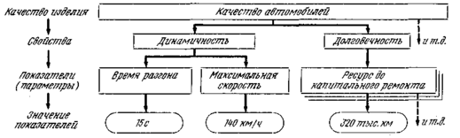 Например, одним из показателей долговечности автомобиля является ресурс до капитального ремонта, составляющий для автомобиля МАЗ-5335 320 тыс. км. Следует отметить, что группа свойств может объединяться в одно комплексное свойство. Например, надежность является сложным свойством, состоящим из таких свойств, как безотказность, долговечность, ремонтопригодность и сохраняемость.