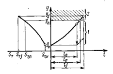 В процессе работы автомобиля показатели его технического состояния изменяются от начальных или номинальных значений уН сначала до предельно допустимых уП.Д., а затем и до предельных уП,, что обусловливает соответствующее изменение и диагностических параметров от sН до sП.Д. и sП. Значения уП и sП соответствуют предельному состоянию изделия, при котором его дальнейшее применение по назначению недопустимо или нецелесообразно. Например, при работе тормозов в результате изнашивания тормозных накладок и барабанов происходит увеличение зазора у между накладками и тормозными барабанами, что вызывает рост тормозного пути SТ (рисунок 2). Предельному значению тормозного пути SТ. П, который регламентирован технической документацией (в данном случае Правилами дорожного движения), соответствует предельное значение зазора уП в тормозном механизме.