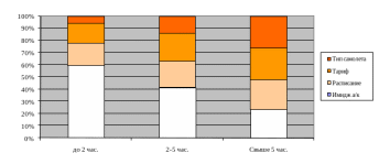 Как видно из рисунка, при полете продолжительностью менее 2 часов 60% пассажиров реагируют прежде всего на удобство расписания. Поэтому для коротких авиалиний следует выбирать небольшие ВС с высокой частотой полетов и удобным расписанием.