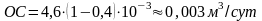ОС – потеря воды с удалённым осадком (нефтешламом), м3/сут;
