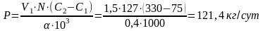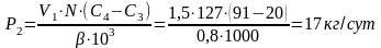 Объём продувки контура определяется из расчёта, что допустимое солесодержание моющего щелочного раствора используемого в обороте соответствует 7000 г./м3, а Qдоп – расчетное подкрепление раствора щелочью 10000 г./сут.