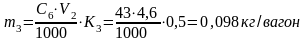 где m3 – расход массы моющего средства, кг/вагон;