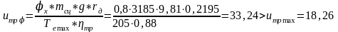 Проверяем полученное значение максимального передаточного числа трансмиссии по условию отсутствия буксования ведущих колес (по сцеплению ведущих колес с дорогой)