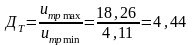 Диапазон передаточных чисел трансмиссии равен отношению максимального передаточного числа трансмиссии к минимальному передаточному числу трансмиссии