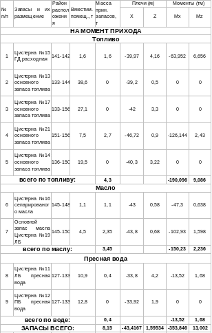 | 22 | Плотность забортной воды в порту до погрузки | 1,016 |